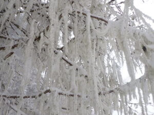 サルオガセに雪が積もりシャンデリアの様にきれいでしたので